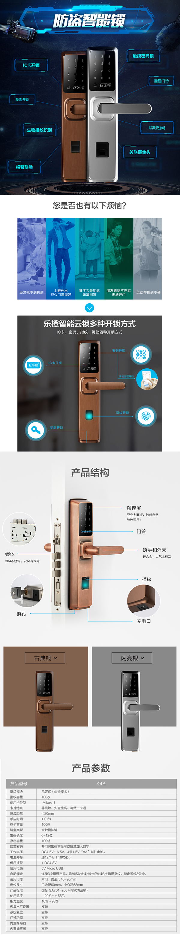 Ic卡、密码、指纹、钥匙4种开锁方式